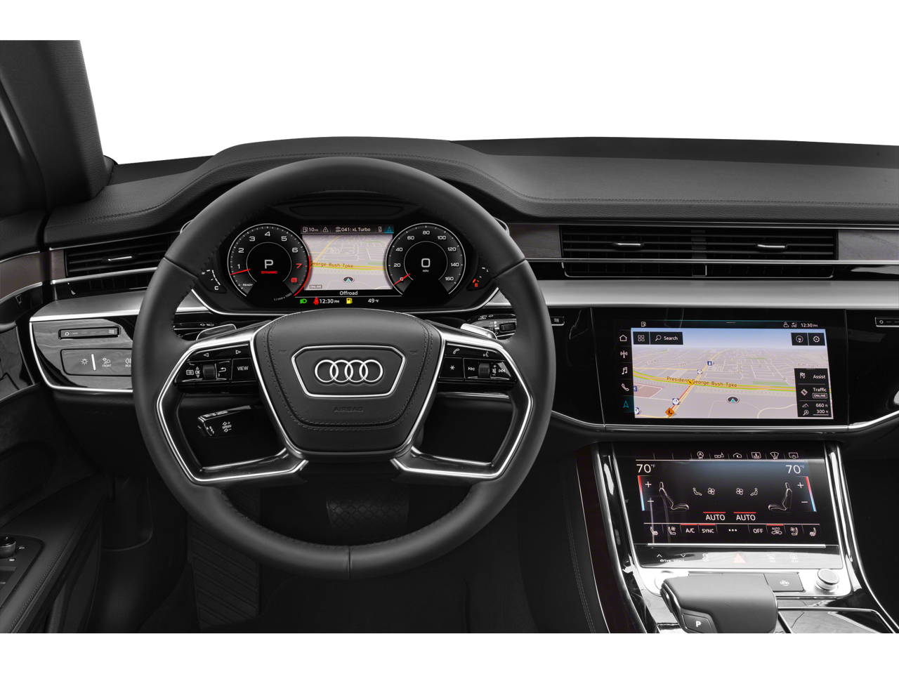 Black Optic Exterior Package, Black Optic Package (Audi Dynamic All-Wheel-Steering and Wheels: 20 Audi Sport 5-V-Spoke-Star-Design), Contour/Ambient LED Interior Lighting Package, Executive Plus Package (Acoustic & Break Resistant Dual-Pane Side Windows, Audi Active Lane Assist, Audi Adaptive Cruise Assist, Audi Side Assist, Front Seat Massage Function, Head-Up Display, Heated 4-Spoke Multifunction Steering Wheel, Heated Front Surfaces, Heated Rear Outboard Seats, Intersection Assist, Rear Matrix LED Reading Lights, Rear Seat Remote Control, and Traffic Sign Recognition), Extended Leather Package, Luxury Package (Aluminum Optic Buttons, Heated Rear Surfaces, Light Alcantara Headliner, Power Rear Outboard Seats w/Lumbar & Memory, Rear Outboard Seat Ventilation w/Massage, and USB Audi Music Interface For Rear Seats), Black w/Valcona Leather Seat Upholstery, Alloy wheels, Audi smartphone interface (Apple CarPlay/Android Auto), 17 Speakers, 22-Way Heated Multi-Contour Comfort Front Seats, 4-Wheel Disc Brakes, ABS brakes, Adaptive suspension, Air Conditioning, AM/FM radio: SiriusXM, Audi Guard Protection Kit, Auto High-beam Headlights, Auto tilt-away steering wheel, Auto-dimming door mirrors, Auto-dimming Rear-View mirror, Auto-leveling suspension, Automatic temperature control, Bang & Olufsen 3D Premium Sound System, Black Cloth Headliner, Brake assist, Bumpers: body-color, Compass, Delay-off headlights, Door auto-latch, Driver door bin, Driver vanity mirror, Dual front impact airbags, Dual front side impact airbags, Electronic Stability Control, Emergency communication system, Four wheel independent suspension, Front anti-roll bar, Front Bucket Seats, Front Center Armrest w/Storage, Front dual zone A/C, Front fog