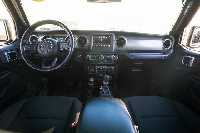 Auxiliary Switch Group (240 Amp Alternator, 700 Amp Maintenance Free Battery, and Auxiliary Switches), Cold Weather Group (Heated Front Seats and Heated Steering Wheel), Convenience Group (Universal Garage Door Opener), LED Headlamp & Fog Lamp Group (Daytime Running Lamps LED Accents, Front LED Fog Lamps, and LED Premium Reflector Headlamps), Popular Equipment Package (Black 3-Piece Hard Top), Quick Order Package 24S Sport S (Automatic Headlamps, Body Color Fender Flares (2-Piece), Daytime Running Lamp System, Deep Tint Sunscreen Windows, Front 1-Touch Down Power Windows, Leather Wrapped Steering Wheel, Molded in Color Bumper w/Accent Color, Normal Duty Plus Suspension, Power Heated Mirrors, Power Tailgate Lock, Remote Keyless Entry, Security Alarm, Speed Sensitive Power Locks, Sport S, and Sun Visors w/Illuminated Vanity Mirrors), Safety Group (Blind Spot & Cross Path Detection, LED Taillamps, and ParkSense Rear Park Assist System), Technology Group (7.0 Touch Screen Display, Air Conditioning w/Auto Temperature Control, Apple CarPlay, Cluster 7.0 TFT Color Display, For More Info, Call 800-643-2112, Google Android Auto, GPS Antenna Input, Integrated Center Stack Radio, Integrated Voice Command w/Bluetooth®, Radio: Uconnect 4 w/7 Display, SiriusXM Radio Service, SiriusXM Satellite Radio, and USB Host Flip), Trailer Tow Package (Class IV Hitch Receiver, Heavy-Duty Engine Cooling, and Trailer Hitch Zoom), Gladiator Sport, 4D Crew Cab, 3.6L V6 24V VVT, 4WD, Black Clearcoat, 110 mph Vehicle Max Speed Calibration, 3.73 Rear Axle Ratio, 4-Wheel Disc Brakes, 8 Speakers, ABS brakes, Air Conditioning, AM/FM radio, Anti-Lock 4-Wheel Disc Heavy Duty Brakes, Anti-Spin Differential Rear Axle, Brake assist, Cloth Low-Back Bucket Seats, Compass, Delay-off headlights, Driver door bin, Driver vanity mirror, Dual front impact airbags, Dual front side impact airbags, Electronic Stability Control, Front anti-roll bar, Front Bucket Seats, Front Center Armrest w/Storage, Front fog lights, Front reading lights, Integrated roll-over protection, Low tire pressure warning, Manufacturer's Statement of Origin, MOPAR All-Weather Floor Mats (DISC), MOPAR Hardtop Headliner, Normal Duty Suspension, Occupant sensing airbag, Outside temperature display, ParkView Rear Back-Up Camera, Passenger door bin, Pa