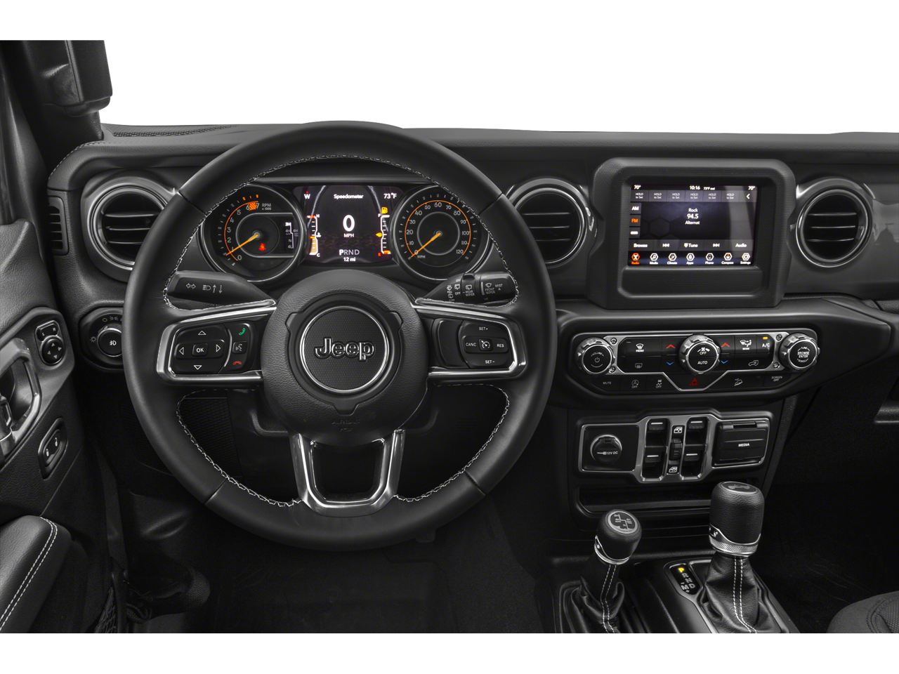 Quick Order Package 22G, Alloy wheels, Apple CarPlay/Android Auto, Black 3-Piece Hard Top, Freedom Panel Storage Bag, Heavy Duty Suspension w/Gas Shocks, No Soft Top, Radio: Uconnect 4C Nav w/8.4 Display, Rear Window Defroster, Rear Window Wiper/Washer, Wheels: 18 x 7.5 Polished w/Gray Spokes, 110 MPH Vehicle Max Speed Calibration, 3.45 Rear Axle Ratio, 4-Wheel Disc Brakes, 9 Speakers, ABS brakes, Air Conditioning, AM/FM radio: SiriusXM, Auto-dimming Rear-View mirror, Automatic temperature control, Aux Battery, Brake assist, Cloth Low-Back Bucket Seats, Compass, Delay-off headlights, Driver door bin, Driver vanity mirror, Dual front impact airbags, Dual front side impact airbags, Electronic Stability Control, Emergency communication system: SiriusXM Guardian, Engine Oil Cooler, Front anti-roll bar, Front Bucket Seats, Front Center Armrest w/Storage, Front dual zone A/C, Front fog lights, Front License Plate Bracket, Front reading lights, Fully automatic headlights, Garage door transmitter, Heated door mirrors, Illuminated entry, Integrated roll-over protection, Leather steering wheel, Low tire pressure warning, Manufacturer's Statement of Origin, Navigation System, Non-Lock Fuel Cap w/o Discriminator, Occupant sensing airbag, Outside temperature display, Panic alarm, ParkView Rear Back-Up Camera, Passenger door bin, Passenger vanity mirror, Power door mirrors, Power steering, Power windows, Radio data system, Rear anti-roll bar, Rear reading lights, Remote keyless entry, Security system, Speed control, Split folding rear seat, Steering wheel mounted audio controls, Stop-Start Dual Battery System, Tachometer, Telescoping steering wheel, Tilt steering wheel, Traction control, Trip computer, Variably intermittent wipers, and Voltmeter.