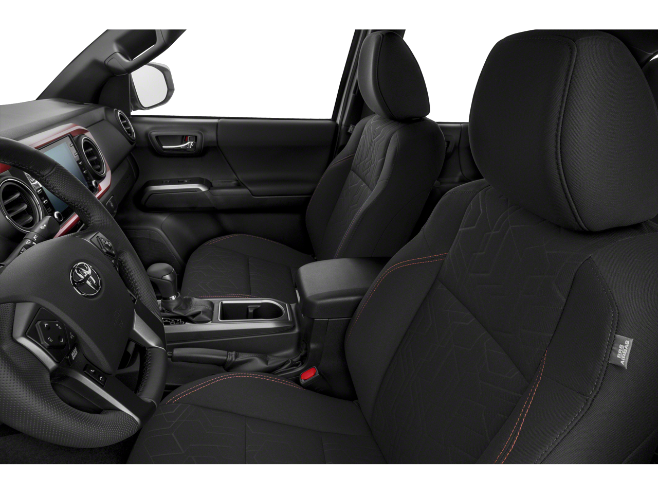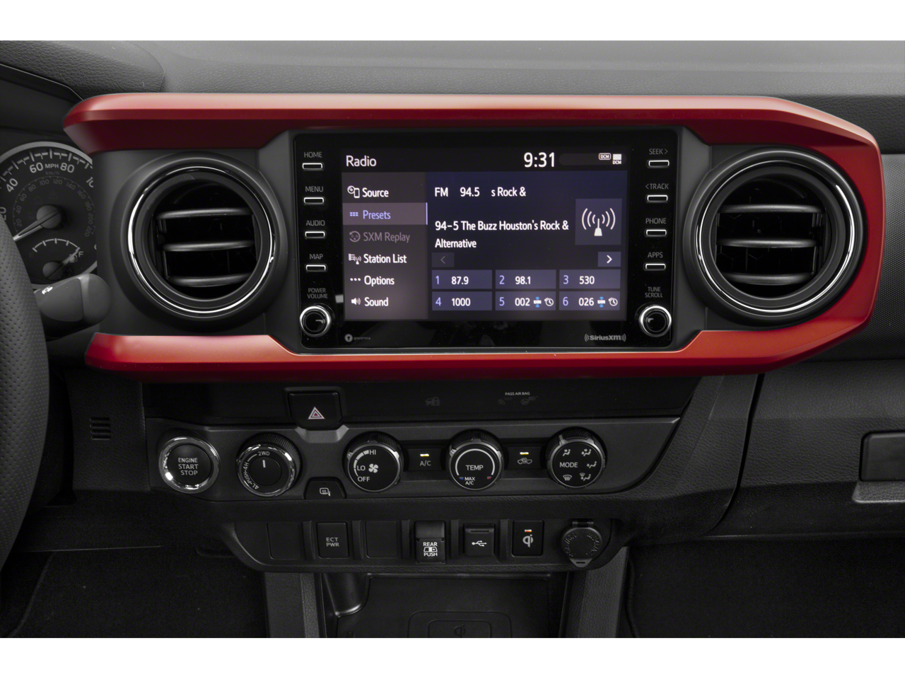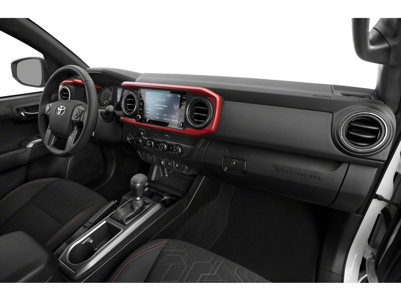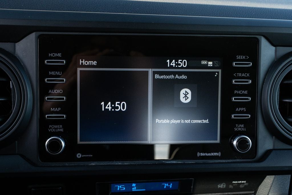 Tacoma SR V6, Toyota Gold Certified Certified, 4WD, Active Cruise Control, Front dual zone A/C, Heated door mirrors, Illuminated entry, 16 Styled Steel Wheels, 6 Speakers, ABS brakes, Air Conditioning, AM/FM radio: SiriusXM, Anti-whiplash front head restraints, Apple CarPlay/Android Auto, Auto High-beam Headlights, Automatic temperature control, Axle Ratio: 3.91, Brake assist, Bumpers: body-color, Driver door bin, Dual front impact airbags, Dual front side impact airbags, Electronic Stability Control, Emergency communication system: Safety Connect (1-year trial), Exterior Parking Camera Rear, Fabric Seat Trim, Front anti-roll bar, Front Bucket Seats, Front Center Armrest, Front reading lights, Front Seats, Front wheel independent suspension, Knee airbag, Low tire pressure warning, Occupant sensing airbag, Outside temperature display, Overhead airbag, Overhead console, Passenger door bin, Power door mirrors, Power steering, Power windows, Radio: Audio, Rear step bumper, Speed control, Speed-sensing steering, Split folding rear seat, Steering wheel mounted audio controls, Tachometer, Telescoping steering wheel, Tilt steering wheel, Traction control, and Variably intermittent wipers.