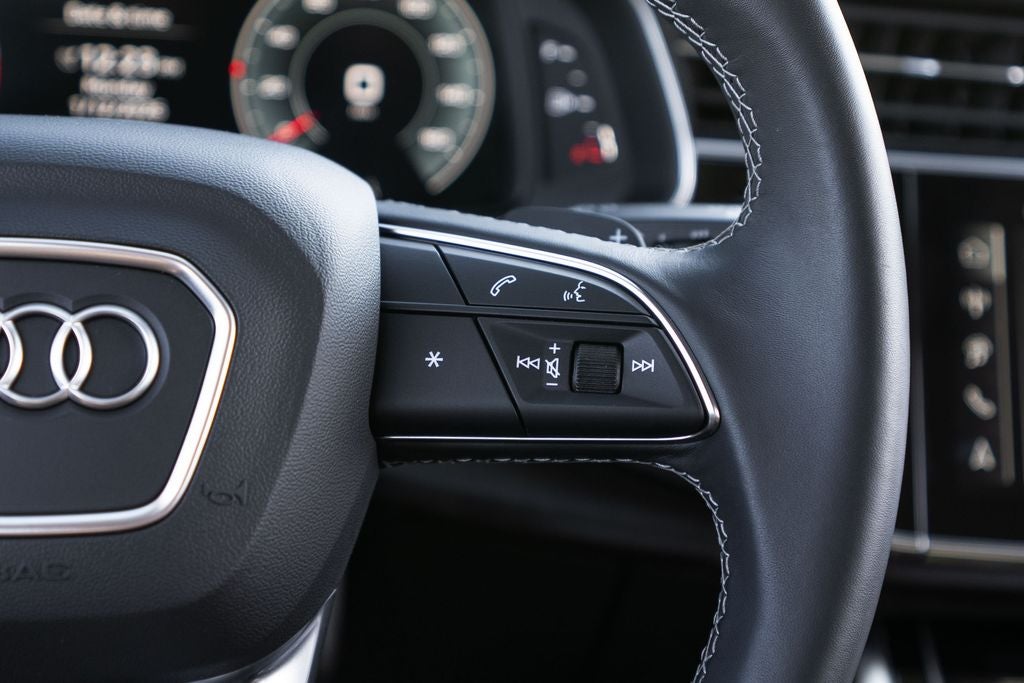 Executive Package (Dual-Pane Acoustic Glass, Four-Zone Automatic Climate Control, Front Seats with Ventilation, Heated Rear Seats, Rear Door/Side Windows and Tailgate Sunshades, and Traffic Sign Recognition), LED Interior Lighting Package Plus, Premium Plus Package (Illuminated Door Sills and Wheels: 20 5-Double-Spoke), 3rd row seats: bench, 7-Pin Adapter, Alloy wheels, Audi Beam Rings, Navigation system: Audi MMI Navigation plus with Touch Response, Speed control, Trailer Hitch, 10 Speakers, 4-Wheel Disc Brakes, ABS brakes, Air Conditioning, Audi Guard Protection Kit, Auto High-beam Headlights, Auto-dimming door mirrors, Auto-dimming Rear-View mirror, Automatic temperature control, Brake assist, Bumpers: body-color, Compass, Delay-off headlights, Driver door bin, Driver vanity mirror, Dual front impact airbags, Dual front side impact airbags, Electronic Stability Control, Emergency communication system: Audi connect CARE, Exterior Parking Camera Rear, Four wheel independent suspension, Front anti-roll bar, Front Bucket Seats, Front Center Armrest, Front dual zone A/C, Front fog lights, Front reading lights, Fully automatic headlights, Garage door transmitter: HomeLink, Genuine wood door panel insert, Heated door mirrors, Heated Front Bucket Seats, Heated front seats, Illuminated entry, Leather Seating Surfaces, Leather Shift Knob, Leather steering wheel, Low tire pressure warning, Memory seat, Occupant sensing airbag, Outside temperature display, Overhead airbag, Overhead console, Panic alarm, Passenger door bin, Passenger vanity mirror, Power door mirrors, Power driver seat, Power Liftgate, Power moonroof: Panoramic, Power passenger seat, Power steering, Power windows, Privacy Trunk Cover, Radio data system, Radio: Audi Sound System, Rain sensing wipers, Rear air conditioning, Rear anti-roll bar, Rear fog lights, Rear reading lig