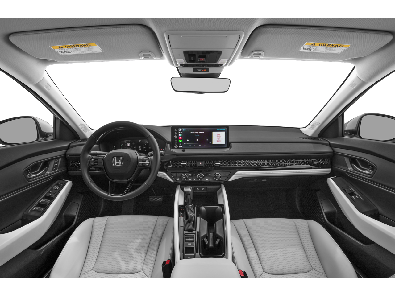 Accord Hybrid EX-L, 4D Sedan, 2.0L I4 DOHC 16V, Platinum White Pearl, Black Leather, 4-Wheel Disc Brakes, 8 Speakers, ABS brakes, Adaptive Cruise Control: Adaptive Cruise Control (ACC) with Low-Speed Follow, Air Conditioning, Alloy wheels, AM/FM radio, Apple CarPlay/Android Auto, Auto High-beam Headlights, Auto-dimming Rear-View mirror, Automatic temperature control, Blind Spot Information (BSI) System warning, Brake assist, Bumpers: body-color, Compass, Delay-off headlights, Driver door bin, Driver vanity mirror, Dual front impact airbags, Dual front side impact airbags, Electronic Stability Control, Emergency communication system: HondaLink, Exterior Parking Camera Rear, Four wheel independent suspension, Front anti-roll bar, Front Bucket Seats, Front Center Armrest, Front dual zone A/C, Front reading lights, Fully automatic headlights, Heated door mirrors, Heated Front Bucket Seats, Heated front seats, Illuminated entry, Knee airbag, Lane departure: Lane Keeping Assist System (LKAS) active, Leather Shift Knob, Leather steering wheel, Leather-Trimmed Seat Trim, Low tire pressure warning, Memory seat, Occupant sensing airbag, Outside temperature display, Overhead airbag, Overhead console, Panic alarm, Passenger door bin, Passenger vanity mirror, Power door mirrors, Power driver seat, Power moonroof, Power passenger seat, Power steering, Power windows, Radio data system, Radio: 180-Watt Audio System, Rear anti-roll bar, Rear reading lights, Rear seat center armrest, Rear side impact airbag, Rear window defroster, Remote keyless entry, Security system, Speed control, Speed-sensing steering, Speed-Sensitive Wipers, Split folding rear seat, Steering wheel mounted audio controls, Telescoping steering wheel, Tilt steering wheel, Traction control, Trip computer, Turn signal indicator mirrors, Variably intermittent wipers, and Wheels: 17 x 7.5J Pewter Gray.