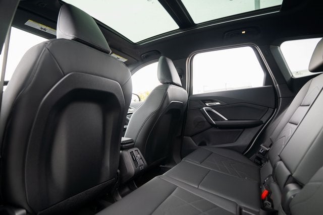 Technology Package (Head-Up Display, Heated Steering Wheel, Live Cockpit Pro, Panoramic Moonroof, Parking Assistant Plus, Premium Content 1, and Remote Engine Start), X1 xDrive28i, 4D Sport Utility, 2.0L I4 16V TwinPower Turbo, AWD, Space Silver Metallic, Black Veganza, 4-Wheel Disc Brakes, 7 Speakers, ABS brakes, Air Conditioning, Alloy wheels, AM/FM Radio, AM/FM radio: SiriusXM with 360L, Apple CarPlay Compatibility, Auto High-beam Headlights, Auto-dimming door mirrors, Auto-dimming Rear-View mirror, Automatic temperature control, BMW TeleServices, Brake assist, Bumpers: body-color, Compass, Delay-off headlights, Driver door bin, Driver vanity mirror, Dual front impact airbags, Dual front side impact airbags, Electronic Stability Control, Emergency communication system: BMW Assist eCall, Exterior Parking Camera Rear, Four wheel independent suspension, Front anti-roll bar, Front Bucket Seats, Front Center Armrest w/Storage, Front dual zone A/C, Front reading lights, Heated door mirrors, Heated Front Seats, Heated front seats, Illuminated entry, Knee airbag, Leather steering wheel, Low tire pressure warning, Memory seat, Navigation, Navigation System, Occupant sensing airbag, Outside temperature display, Overhead airbag, Overhead console, Panic alarm, Passenger door bin, Passenger vanity mirror, Perforated Veganza Upholstery, Power door mirrors, Power driver seat, Power Front Seats, Power Liftgate, Power passenger seat, Power steering, Power windows, Radio data system, Rain sensing wipers, Rear anti-roll bar, Rear reading lights, Rear seat center armrest, Rear window defroster, Rear window wiper, Remote keyless entry, Security system, Speed control, Speed-sensing steering, Speed-Sensitive Wipers, Split folding rear seat, Spoiler, Steering wheel mounted audio controls, Tachometer, Telescoping steering wheel, Tilt steering wheel, Traction control, Trip computer, Turn signal indicator mirrors, Variably intermittent wipers, Wheels: 18 x 7.5 V-Spoke Bi-Color, Widescreen Display, and Wireless Device Charging.